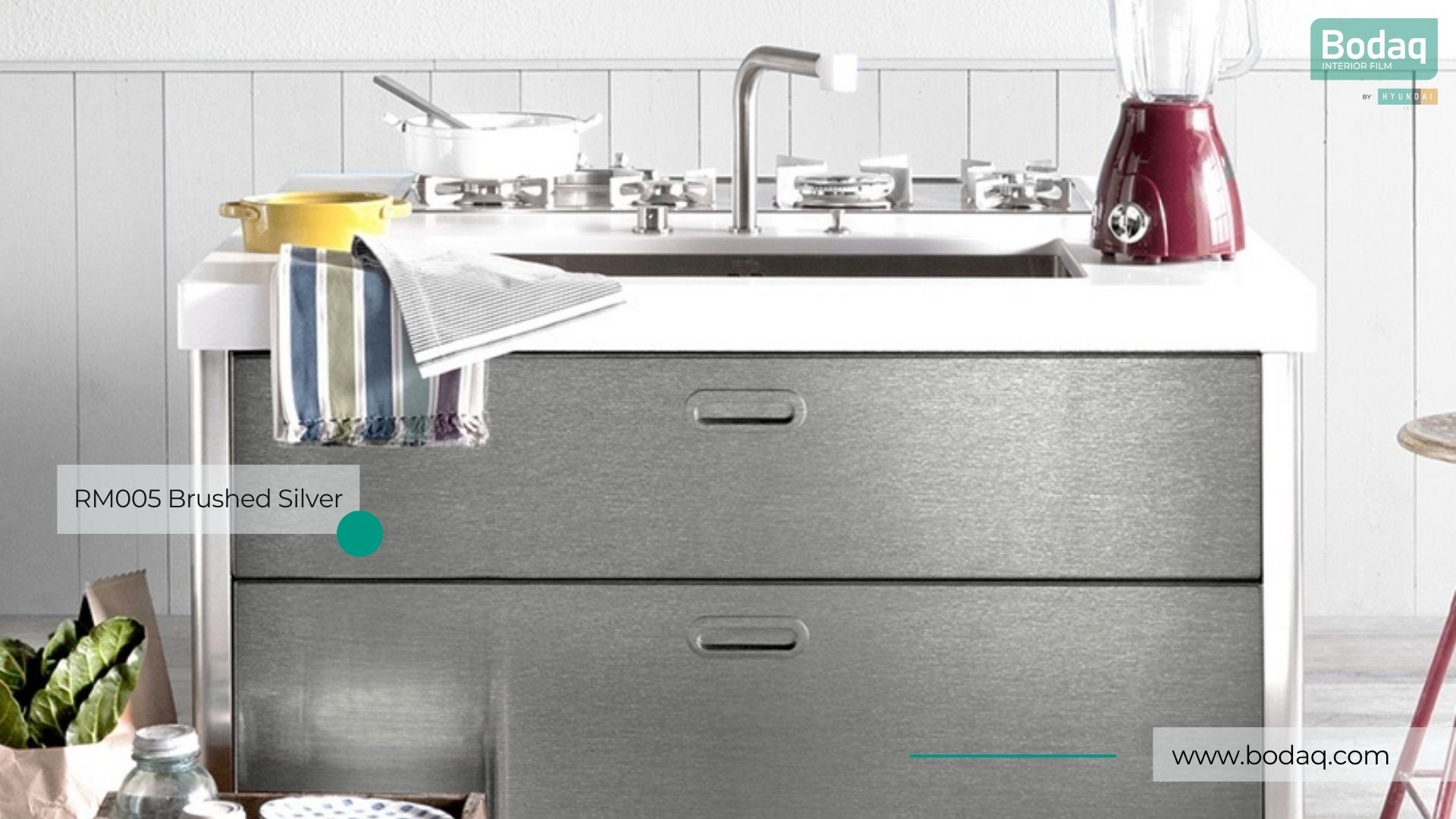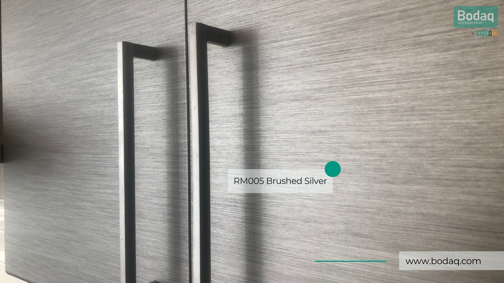 RM005 拉絲銀將銀色的光澤與細膩的拉絲金屬質感完美融合,為室內設計帶來精緻且現代的美學氛圍。這款百搭的花色散發出優雅與摩登氣息,是各種空間應用的理想選擇。